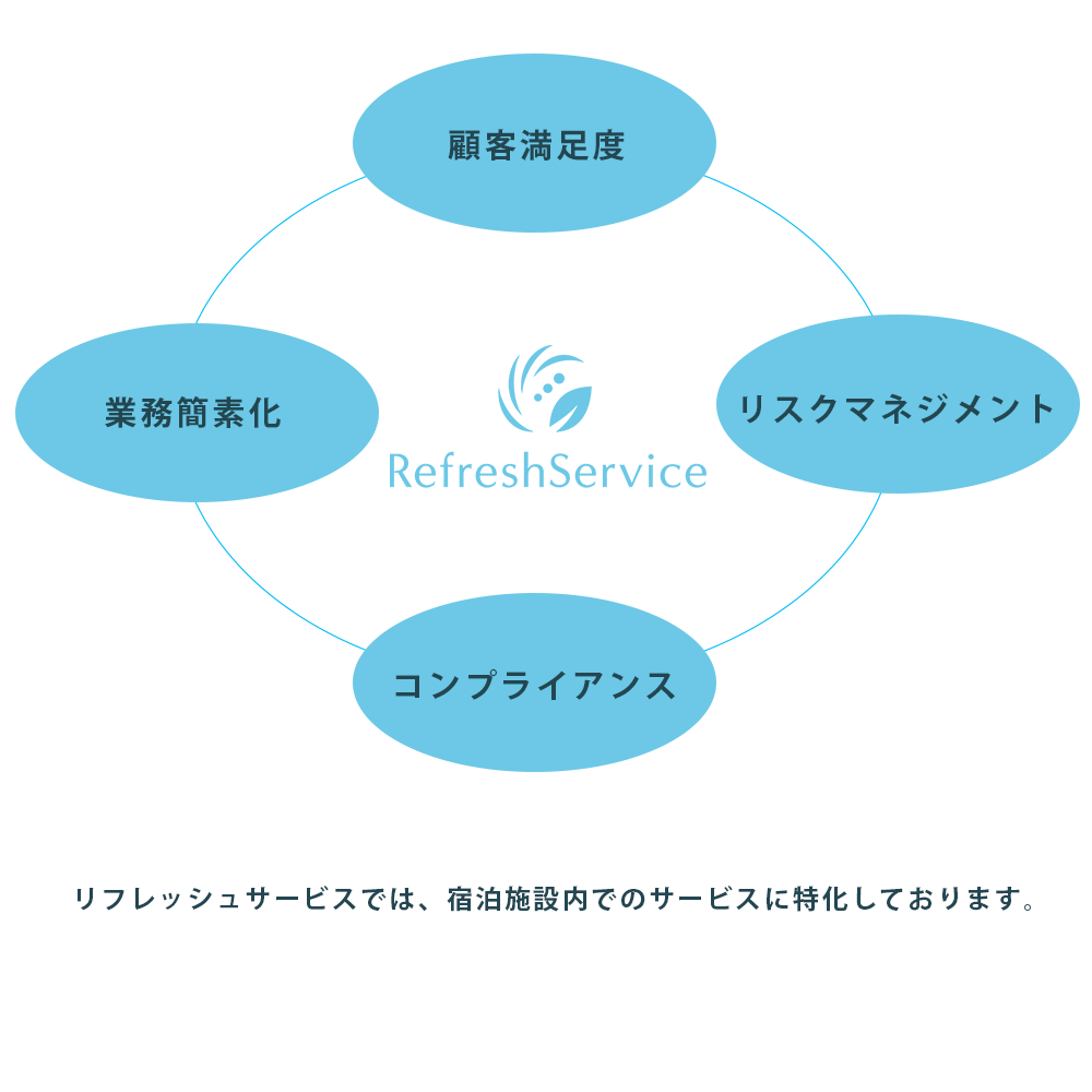 宿泊施設、客室内リラクゼーションサービスの運営を行っております。